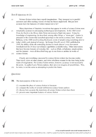 2023 מועד חורף - 41 - פרק ראשון- אנגלית
