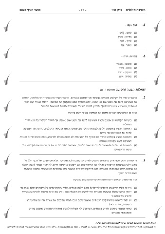 מועד חורף 2024 - 13 - חשיבה מילולית -פרק שני