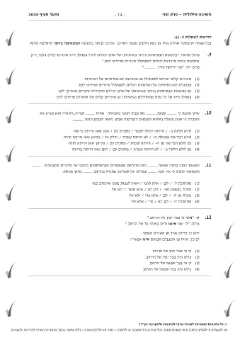 מועד חורף 2024 - 14 - חשיבה מילולית -פרק שני