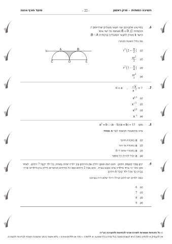 מועד חורף 2024 - 22 - חשיבה כמותית -פרק ראשון