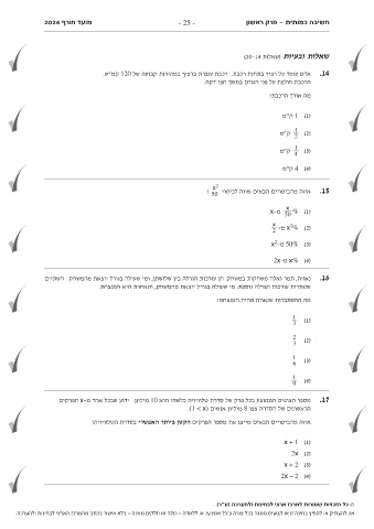 מועד חורף 2024 - 25 - חשיבה כמותית -פרק ראשון