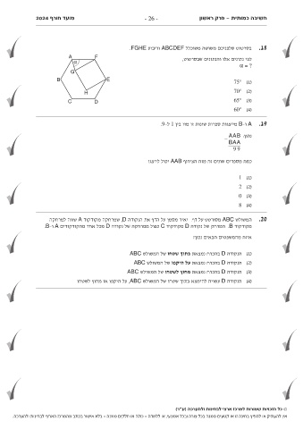 A F בסרטוט שלפניכם משושה משוכלל ABCDEFוריבוע . FGHE .18