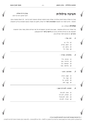 מועד חורף 2024 חשיבה מילולית -פרק ראשון - 4 -