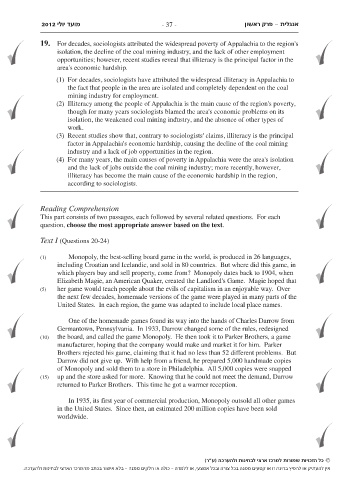 2012 מועד יולי - 37 - פרק ראשון- אנגלית