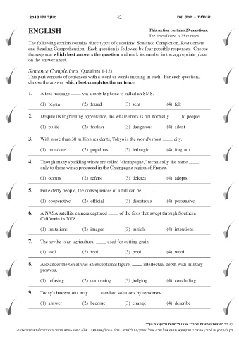 2012 מועד יולי - 42 - פרק שנ י- אנגלית