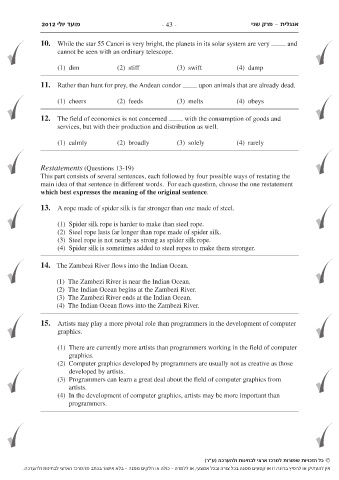 2012 מועד יולי - 43 - פרק שני- אנגלית