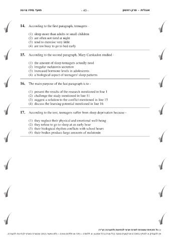 2018 מועד סתיו - 40 - פרק ראשון- אנגלית