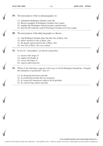 2018 מועד סתיו - 42 - פרק ראשון- אנגלית
