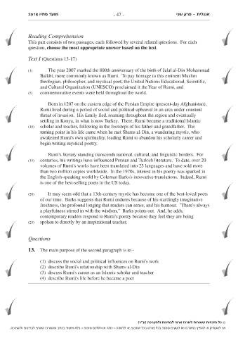 2018 מועד סתיו - 47 - פרק שני- אנגלית