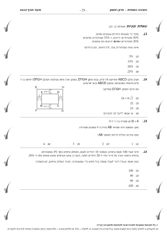 Eמועד חורף 2023 - 25 - חשיבה כמותית -פרק ראשון